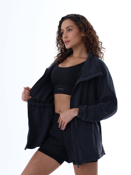 Engineered for active lifestyles, the Jacket Fit Essential Active combines sleek black styling with functional performance features. This versatile piece transitions seamlessly from workouts to everyday wear, offering breathable fabric construction and strategic design elements...